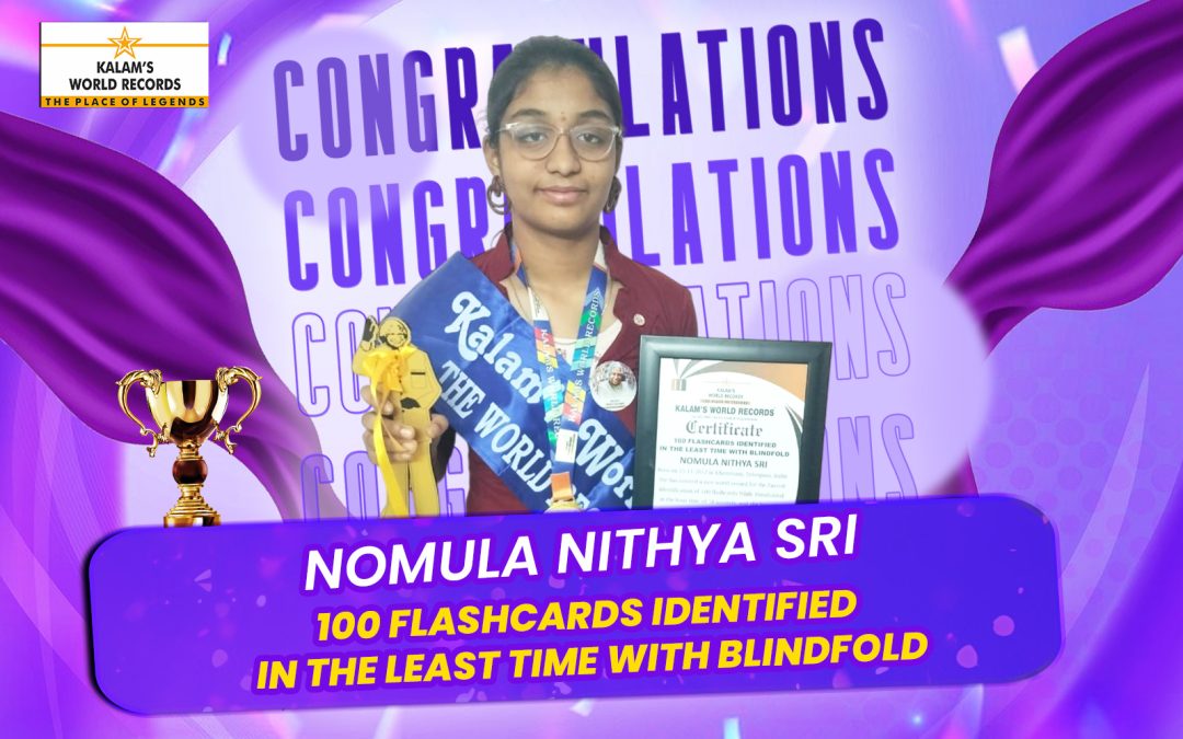 Born on 15-11-2012 in Khammam, Telangana, India. She Has Created a New World Record for the Fastest Identification of 100 Flashcards While Blindfolded in the Least Time of 58 Seconds, and She Has Set a New World Record. This Outstanding Achievement Was Successfully Accomplished on 16-03-2026 and Has Been Officially Recognized and Registered by Kalam’s World Records.