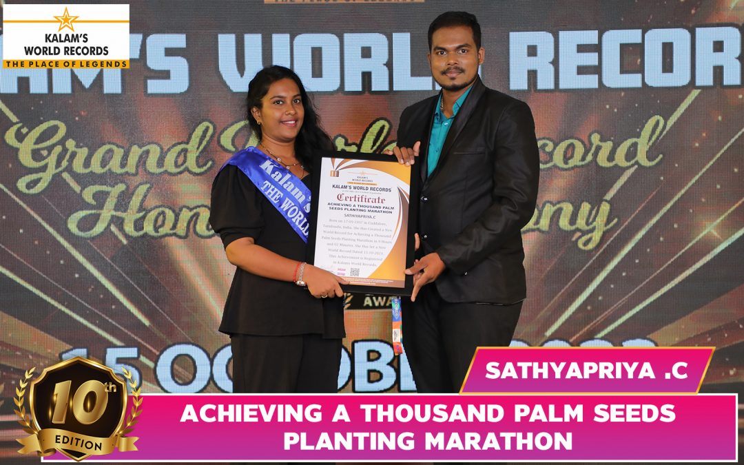 Born on 17-09-1997 in Cuddalore, Tamilnadu, India. She Has Created a New World Record for Achieving a Thousand Palm Seeds Planting Marathon in 9 Hours and 02 Minutes. She Has Set a New World Record Dated 15-10-2023. This Achievement is Registered in Kalams World Records.