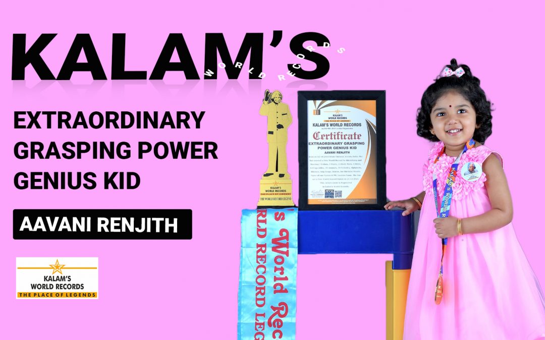 AAVANI RENJITH Born on 02-10-2019 from Thrissur, Kerala, India. She has created a new world record by Identifying and Reciting 7 – colors, 13 – body parts, 6 – birds, 14 – vegetables, 35 – Animals, 10 – vehicles, 7 – fruits,...