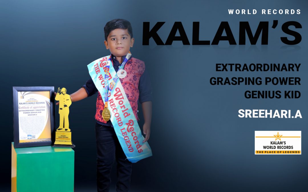 SREEHARI.A Born on 28-04-2017 from Thiruvananthapuram, Kerala, India is appreciated for his talent by Identifying and Reciting Names of 14 districts of Kerala, 28Indian states & their capitals, 8 Union territories and their capitals in alphabetical order, 15+...