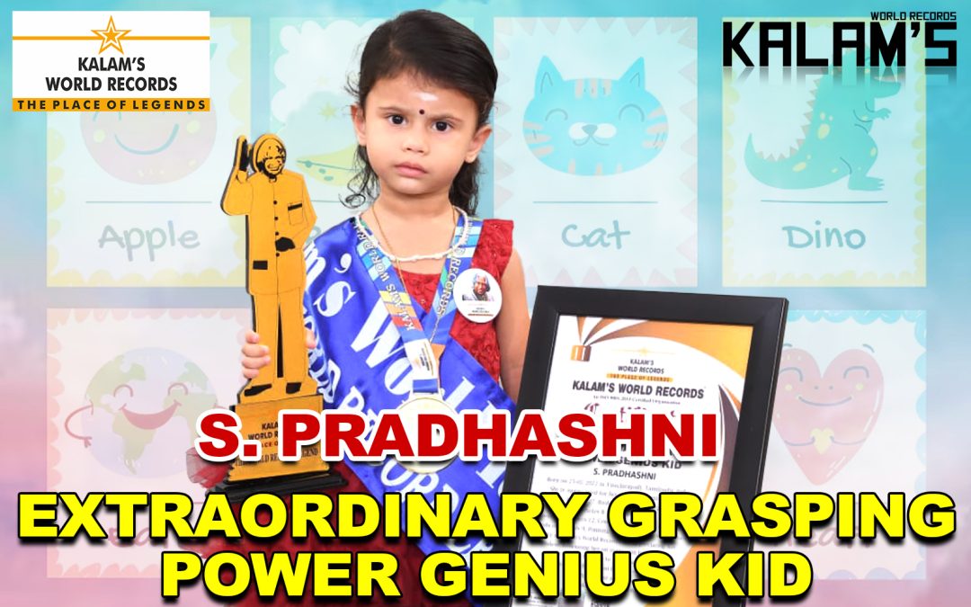 Born on 25-02-2022 in Tiruchirapalli, Tamilnadu, India. She is Appreciated for Her Talent for Identifying and Reciting, Animals 27, Birds 26, Fruits 21, Vegetables 27, Actions 27, Vehicles & Transport 27, Body Parts 15, Flowers 18, Colours 12, Counting Numbers 1 – 10, Imitating Sounds of Animals 9, Pointing Organs to Wear Accessories 6. We at Kalam’s World Records Are Appreciating Her Talent, Honouring Her on Stage With Big Applause, and Looking Forward to Her Future Stepping Stones. Achievement Date 01-04-2024. This Achievement is Recognized by Kalam’s World Records.