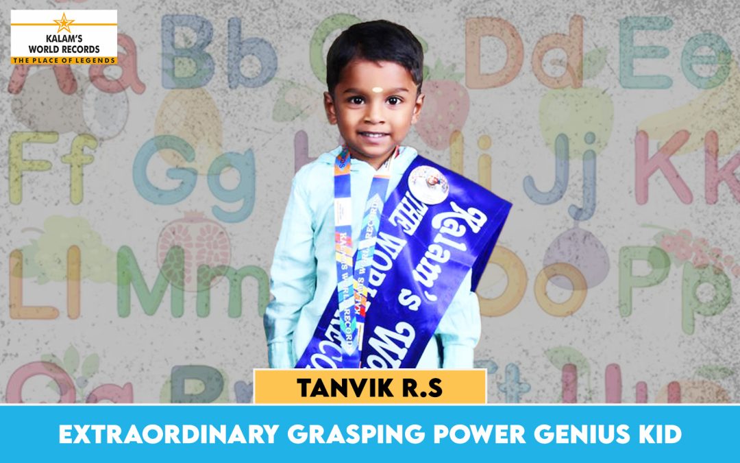 Born on 25-06-2021 in Coimbatore, Tamil Nadu, India. He is Appreciated for His Talent in Identifying and Reciting English Alphabet 26, Aathichudi 10, Tamil Vowels 13, Identity 22, Good Habits 8, Electronic Items 15, Fruits 13, Colors 9, Foods and Beverages 22, Common Things 75, Numbers 1 0, Vehicles Logo 24, Parts of the Body 10, Season and Identity 11, Shapes 7, Vegetables 13, Vehicles 27, Thirukkural and Thiruvalluvar 2, Days of Week 7, Animals 48, Matches 10, Colors 10. We at Kalam’s World Records Appreciate His Talent, Honor Him on Stage With Big Applause, and Look Forward to His Future Stepping Stones. Achievement Date 02-01-2025. This Achievement is Recognized by Kalam’s World Records.