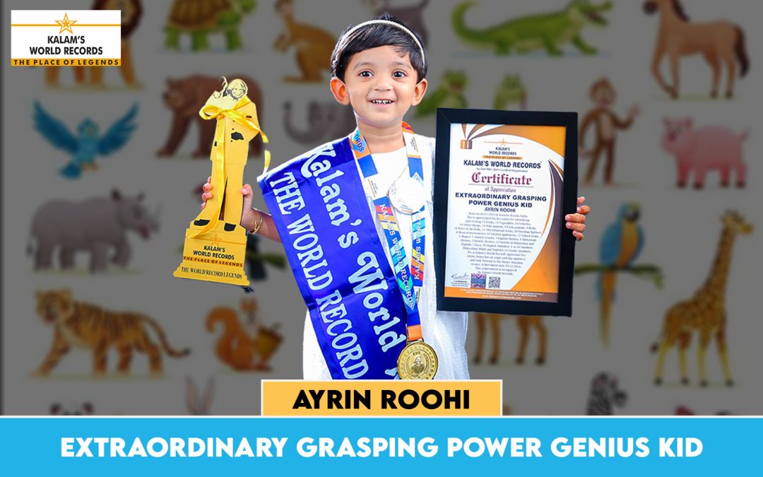 Born on 06-01-2023 in Kannur, Kerala, India. She is Appreciated for Her Talent for Identifying and Reciting 11 Fruits, 13 Vegetables, 10 Vehicles, 14 Other Things, 19 Wild Animals, 9 Farm Animals, 9 Birds, 14 Parts of the Body, 15 Miscellaneous Items, 20 Freedom Fighters, 8 Musical Instruments, 10 Kitchen Appliances, 11 School Items, 5 Shapes, 7 Animal Sounds, 3 English Rhymes, 4 Malayalam Rrhymes, 2 Islamic Rhymes, 12 Months Malayalam and English, 7 Days, 26 English Alphabets, 1 to 10 Numbers (Malayalam, Hindi and English), 11 Family Members. We at Kalam’s World Records Appreciate Her Talent, Honor Her on Stage With Big Applause, and Look Forward to Her Future Stepping Stones. Achievement Date 19-12-2024. This Achievement is Recognized by Kalam’s World Records.