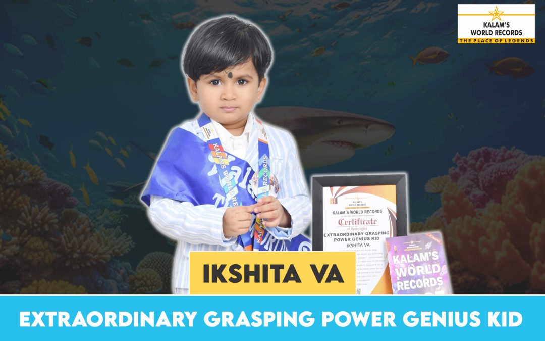 Born on 28-12-2022 in Alappuzha, Kerala, India. She is appreciated for Her Talent for identifying and reciting Fruits 13, English Alphabet 26, Sea Animals 7, Animal Sounds 5, Animals 12, Vehicles 7, Vegetables 15, Body Parts 20, Electronic Items 14, Kids Songs 2, Personal Details 4, Furniture 6. We at Kalam’s World Records Appreciate Her Talent, Honor Her on Stage With Big Applause, and Look Forward to Her Future Stepping Stones. Achievement Date 14-05-2025. This Achievement is Recognized by Kalam’s World Records.