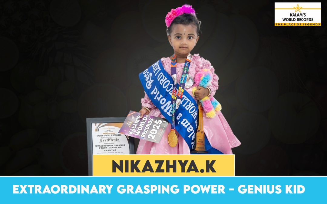Born on 17-07-2024 in Virudhunagar, Tamil Nadu, India, is highly appreciated for her exceptional talent and remarkable grasping ability demonstrated through the identification and recitation of the following National leaders 10, Vegetables 17, Animals 10, Fruits 15, Action words 16, Birds 5, Body parts 5, Planets 6, Colors 4, Common things 63, Shapes 3, Vehicles 6, Cosmetics 12 Flower 1.
