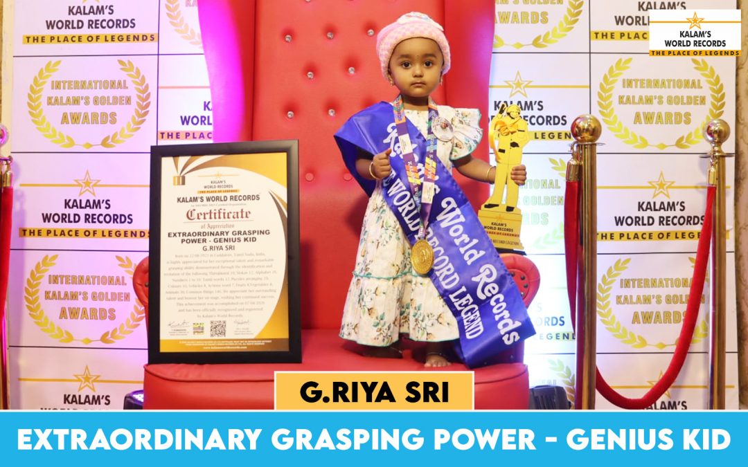 Born on 22-08-2023 in Cuddalore, Tamil Nadu, India, is Highly Appreciated for Her Exceptional Talent and Remarkable Grasping Ability Demonstrated Through the Identification and Recitation of the Following Thirukkural 10, Slokas 12, Alphabet 26, Numbers 1 to 10, Tamil Words 12, Puzzles Arranging 29, Colours 10, Vehicles 8, Actions Word 7, Fruits 8, Vegetables 8, Animals 30, Common Things 146. We Appreciate Her Outstanding Talent and Honour Her on Stage, Wishing Her Continued Success. This Achievement Was Accomplished on 07-04-2026 and Has Been Officially Recognized