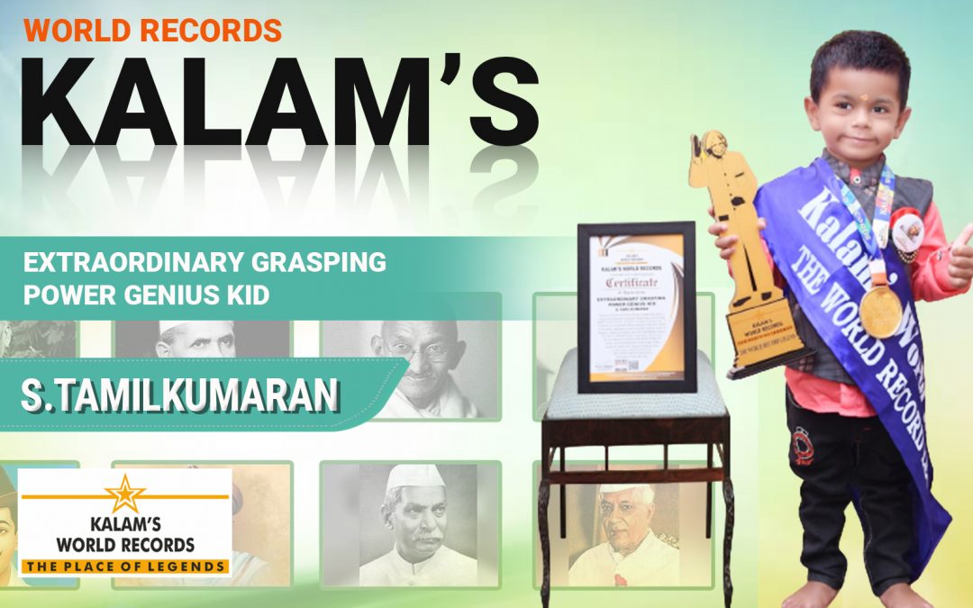 Born on 31-05-2019 From Theni, Tamil Nadu. India Is Appreciated for His Talent by Identifying and Reciting Tamil Vowels Words, Nattupura Kalaigal, Fruits Name 11, Numbers 10, National Leaders Identify 8 Pictures, Parts of the Body, Alphabet Chart, National Leaders, Name of Fingers, Months in English, Kitchen Vocabulary Names, Identify in Animals, Birds, Vegetables, 42pictures. As We Kalam’s World Records Appreciating His Talent and Honoring Him in the Stage of Big Applause and for His Future Stepping Stone.
