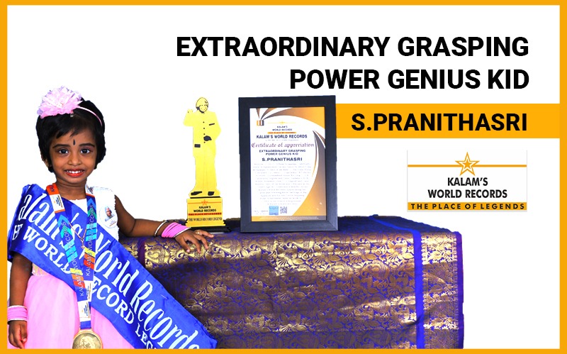 Tender Age of 2 Years and 4 Months. As we Kalam’s World Records Appreciating her Talent and Honoring her in the Stage of Big Applause and for her Future Stepping Stone. Achievement Dated on 06-08-2021. This Achievement is Registered in Kalam’s World Records.