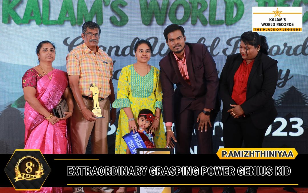 Born on 08-06-2021 in Madurai, Tamilnadu, India. She is Appreciated for Her Talent by Identifying 260 Above Flash Cards Are Flowers: 23 Birds: 26, Body Parts: 24 Things:27, Freedom Fighters: 27, Professionals: 25, Vehicles, 26, Vegetables: 24, Animals: 25, Action Verbs:28, Shapes:5.we at Kalam’s World Records Are Appreciating Her Talent, Honoring Her on Stage With Big Applause, and Looking Forward to Her Future Stepping Stones. Achievement Date 25-02-2023. This Achievement is Registered in Kalam’s World Records.