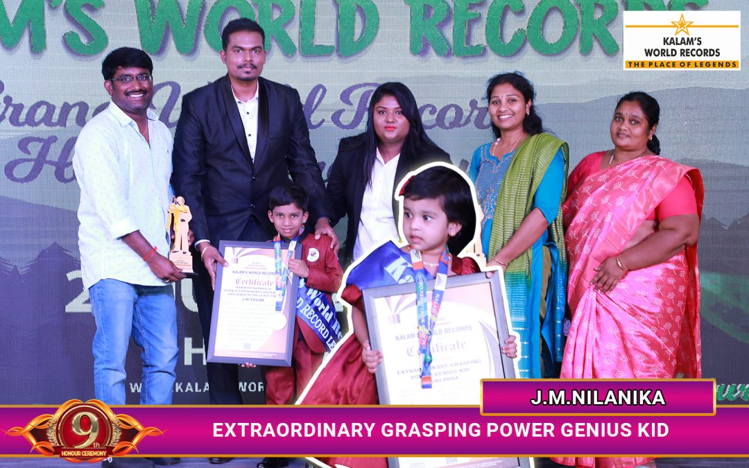 Born On 05-10-2020 In Salem, Tamilnadu, India.she Is Appreciated For Her Talent By Identifying 48 Animals 24 Birds, 14 Vegetables, 22 Fruits, 76 Household Items, 40 Food Items, 24 Cartoon Characters, 14 Vehicles, 16 Professions, 25 Action Words, 26 Accessories, 19 Body Parts, 10 Differentiating (Tall, Short, Big And Small), 10 Counting Objects,12 Matching Objects, Reciting 6 Tamil Stories And Rhymes, 6 English Rhymes, Alphabets Tamil And English, Numbers 1-10.we At Kalam’s World Records Are Appreciating Her Talent, Honouring Her On Stage With Big Applause, And Looking Forward To Her Future Stepping Stones.