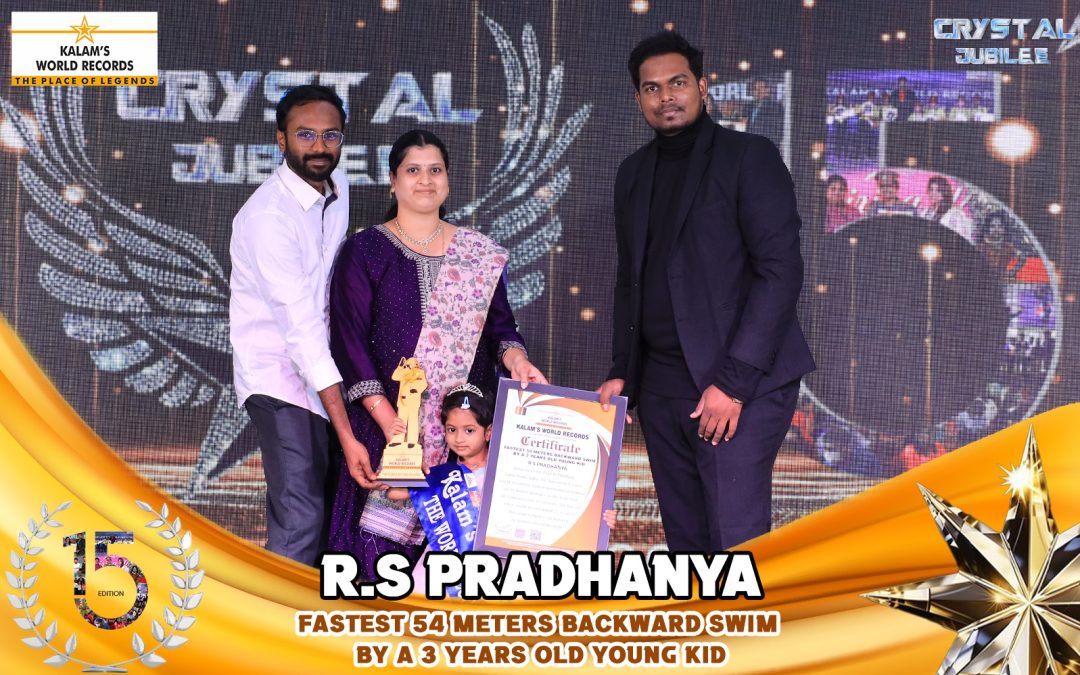 Born on 11-08-2021 in Dindigul, Tamil Nadu, India. She Has Created a New World Record for Fastest Backward Swimming of 54 Meters Distance in the Least Time of 3 Minutes and 50 Seconds. She Has Set a New World Record Dated 25-11-2024. This Achievement is Recognized by Kalam’s World Records.