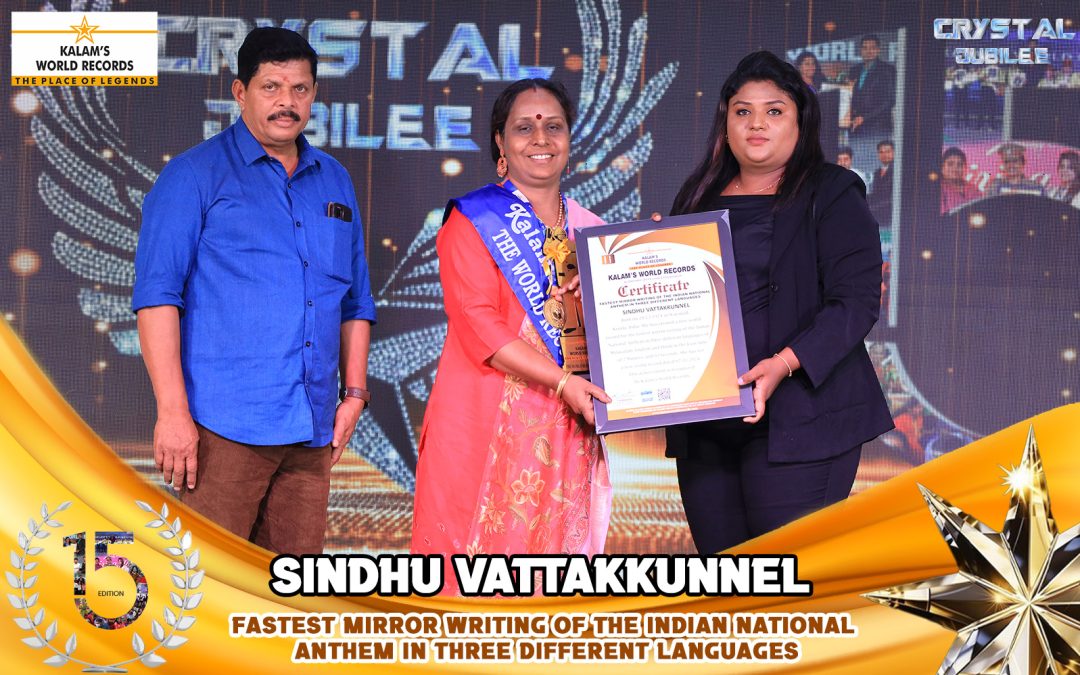 Born on 20-12-1974 in Wayanad, Kerala, India. She Has Created a New World Record for the Fastest Mirror Writing of the Indian National Anthem in Three Different Languages of