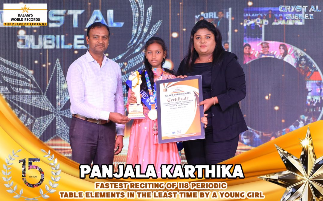 Born on 26-04-2012 in Siddipet, Telangana, India. She Has Created a New World Record for the Fastest Reciting of 118 Periodic Table Elements in the Least Time of 8 Seconds 85 Milliseconds. She Has Set a New World Record Dated 25-02-2025. This Achievement is Recognized by Kalam’s World Records.