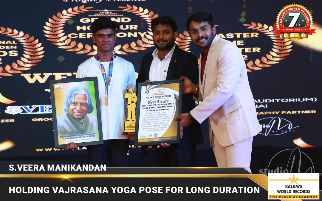 Born on 24-05-2003 From Sethu Institute of Technology, Virudhunagar, Tamilnadu, India. He Has Created a New World Record by Holding Vajrasana Yoga Pose for 1 Hour and 10 Minutes. He Has Set a New World Record Dated 15-10-2022. This Achievement is Registered in Kalams World Records.