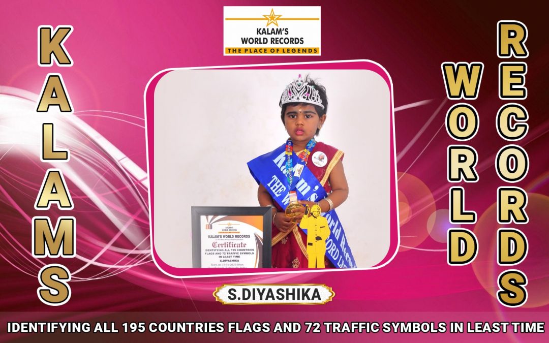 Born on 19-01-2020 From Thoothukudi, Tamilnadu, India. She Has Created a New World Record by Identifying All 195 Countries Flags in the Least Time of 27 Minutes and 72 Traffic Symbols in the Least Time of 16 Minutes. She Has Set a New World Record Dated 27-10-2022. This Achievement is Registered in Kalams World Records.