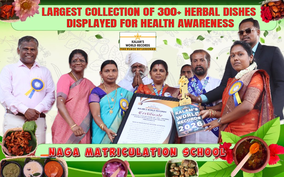 Ramanathapuram Tamil Nadu, India Has Successfully Organized and Executed a Group World Record Attempt for the Largest Collection of 300+ Herbal Dishes Displayed for Health Awareness. The Team Collectively and Successfully Completed the Record Attempt With 250 and Above Participants. This Remarkable Achievement Was Accomplished on 07-04-2026 at School Campus and Has Been Officially Verified and Recognized and Registered by Kalam’s World Records.