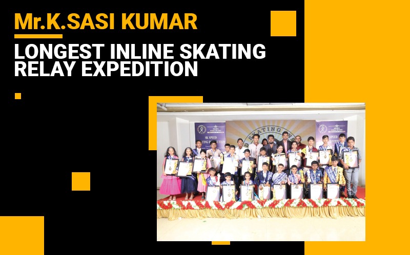 India. Had created a new world record on “LONGEST INLINE SKATING RELAY EXPEDITION”. SK SPEED SKATING Coimbatore, Tamilnadu, India have organized a world record attempt of Rally from CHENNAI TO PONDICHERRY (145 kilometers Started on 24.02.2021,03:00 pm to 25.02.2021,03:00am (12hrs)”SK SPEED SKATING INSTITUTION had successfully participated and completed the world record attempt with 24 Members and set a new world record dated on 26-03-2021.Venue: Hotel Vijay Elanza.