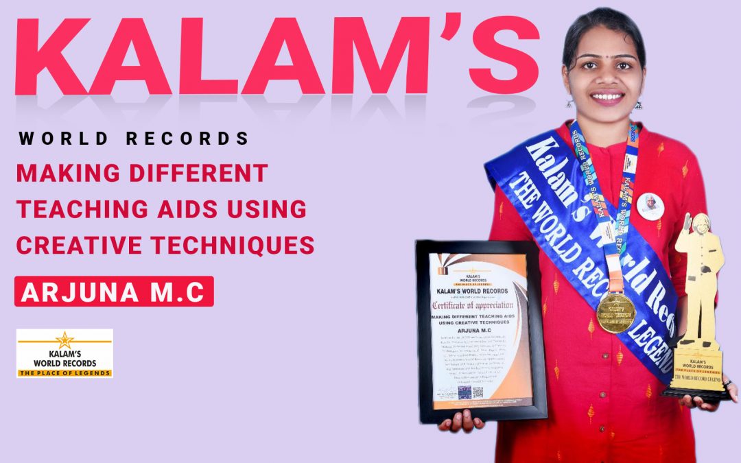 Born on 15-04-1995 from Perumanna, Kozhikode, Kerala, India is appreciated for her talent by making different teaching aids using creative techniques by using Sand, Dust, Paper, Stick, Ice stick, Carbon paper, Woolen, Eggshell. As we Kalam’s World Records appreciating her talent and honoring her in the stage of big applause and for her future stepping stone. Achievement Dated 11-01-2022. This achievement is registered in Kalam’s World Records.
