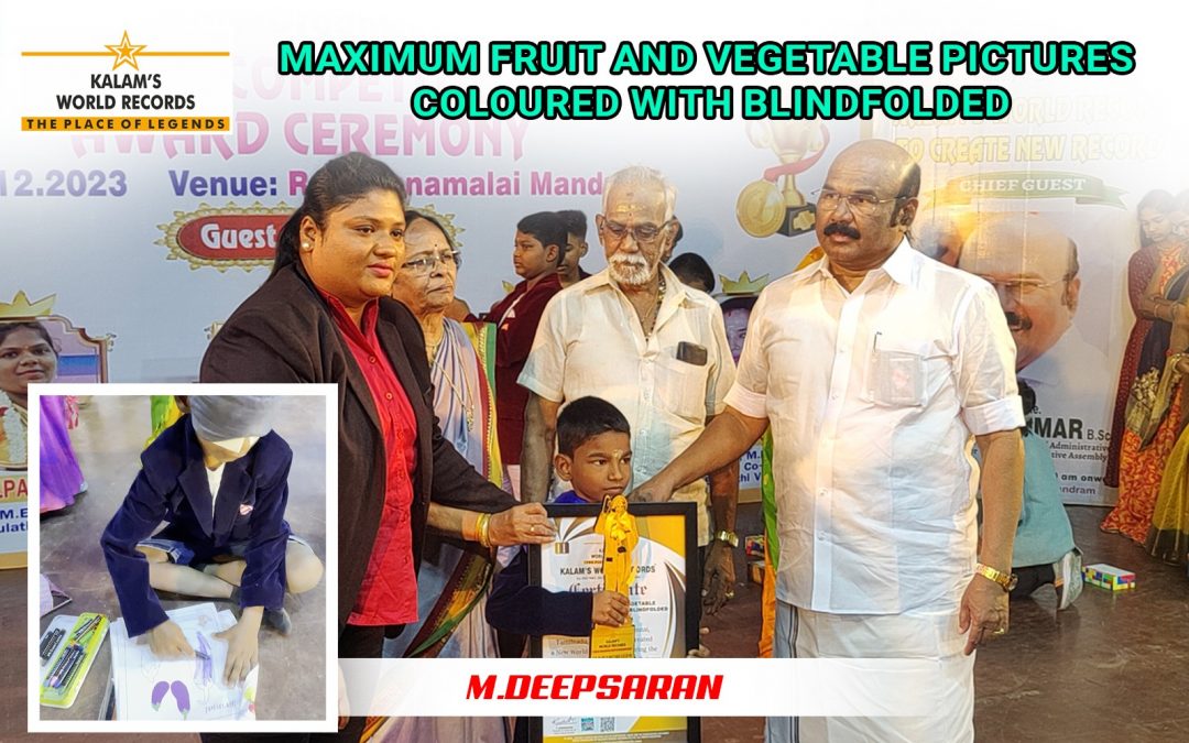 Born on 13-04-2017 in Chennai, Tamilnadu, India. He Has Created a New World Record for Coloring Maximum Fruit and Vegetable Pictures With Blindfolded in 10 Minutes. He Has Set a New World Record Dated 17-12-2023. This Achievement is Registered in Kalams World Records.