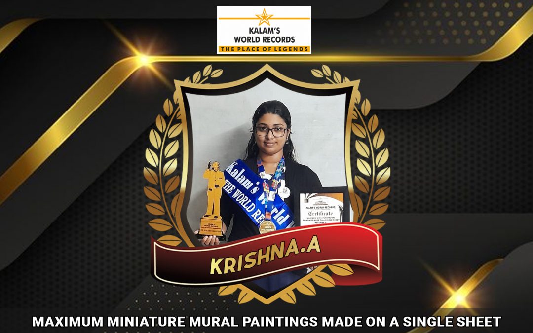 Born on 24-01-2006 in Thiruvananthapuram, Kerala, India. She Has Created a New World Record by Maximum Miniature Mural Paintings Made on a Single Sheet. She Has Set a New World Record Dated 30-11-2022. This Achievement is Registered in Kalams World Records.