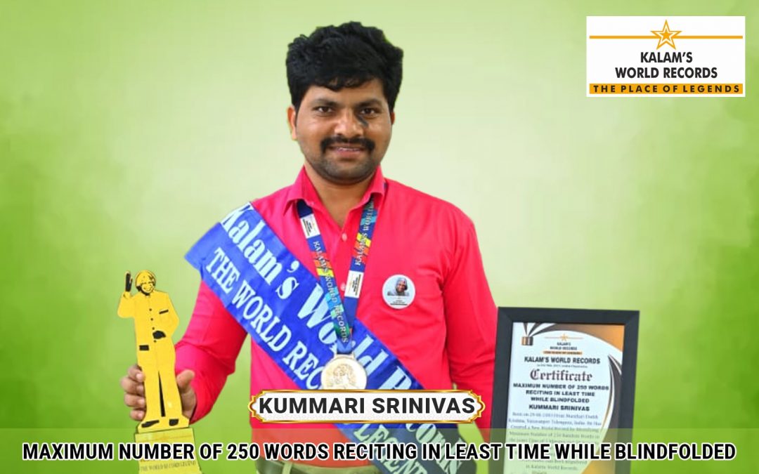 Born on 20-06-1993 From Murahari Doddi Krishna, Narayanpet Telengana, India. He Has Created a New World Record by Identifying Maximum Number of 250 Random Words in the Least Time of 5 Minutes and 58 Seconds While Blindfolded. He Has Set a New World Record Dated 30-10-2022. This Achievement Has Been Registered in Kalams World Records.