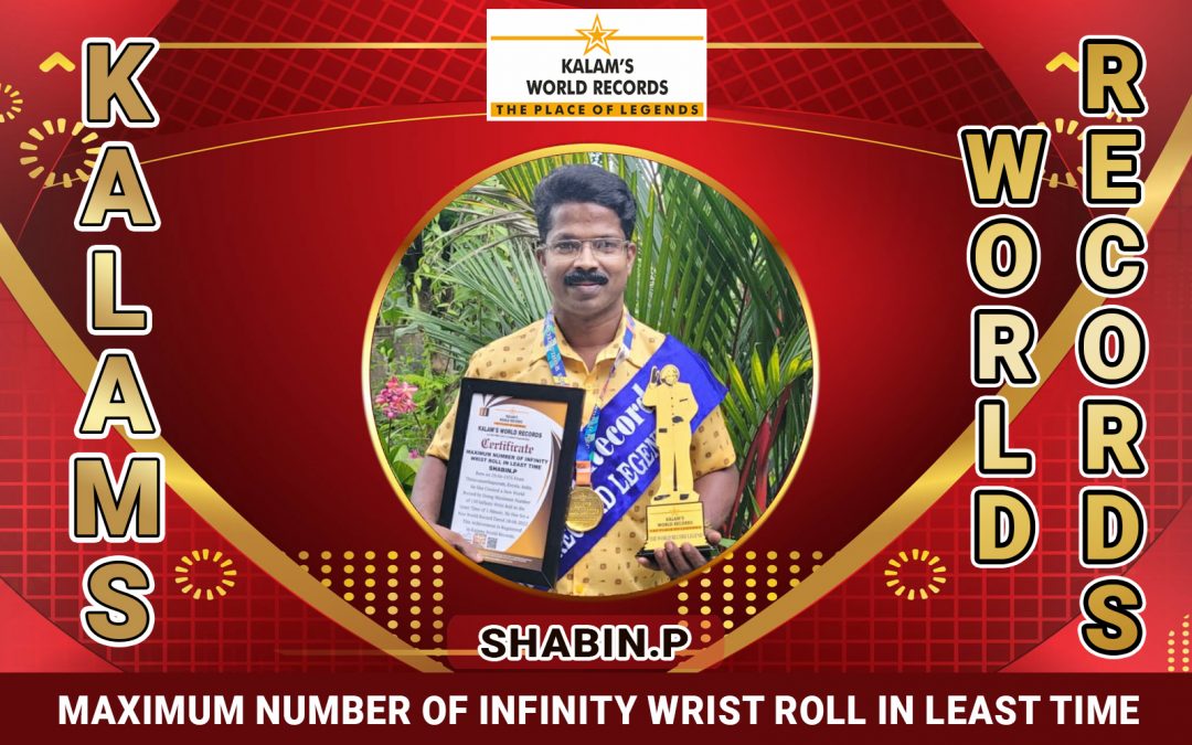 Born on 20-04-1976 From Thiruvananthapuram, Kerala, India. He Has Created a New World Record by Doing Maximum Number of 130 Infinity Wrist Roll in the Least Time of 1 Minute. He Has Set a New World Record Dated 28-06-2022. This Achievement is Registered in Kalams World Records.