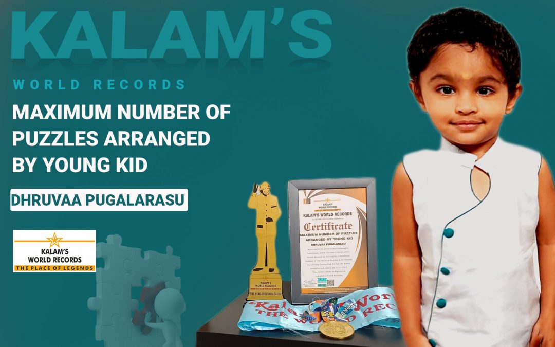 Born on 26-06-2019 from Krishnagiri, Tamilnadu, India. He has created a new world record by Arranging a Maximum Number of 236 pieces of puzzles in 30 Minutes by a young genius kid. He has set a new world record dated 16-12-2021. This achievement is registered in Kalam’s World Records.