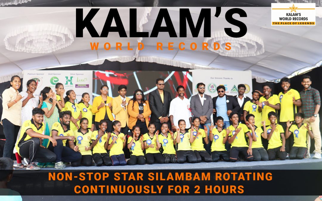 Director of Pallipalayam Kalaithaai Silambam Academy,Namakkal had created a New World Record by Non-stop Star Silambam Rotating Continuously For 2 Hours.