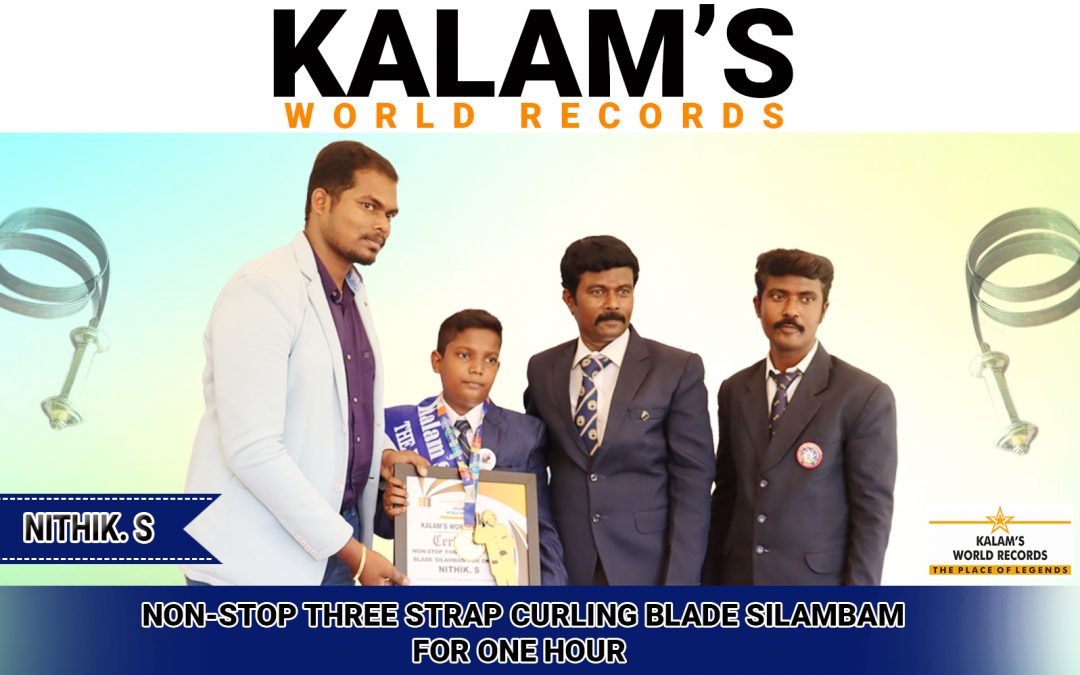 Born on 14-12-2009 From Madurai, Tamilnadu, India. He Has Created a New World Record by Doing Non-stop Three Strap Curling Blade Silambam for One Hour. He Has Set a New World Record Dated 01-05-2022,under the Guidance of Sensei B. Sai Suthakar Founder of the Sai Traditional Art. Venue : Blessing Matriculation Higher Secondary School, Achampathu, Madurai. This Achievement Is Registered in Kalam’s World Records.