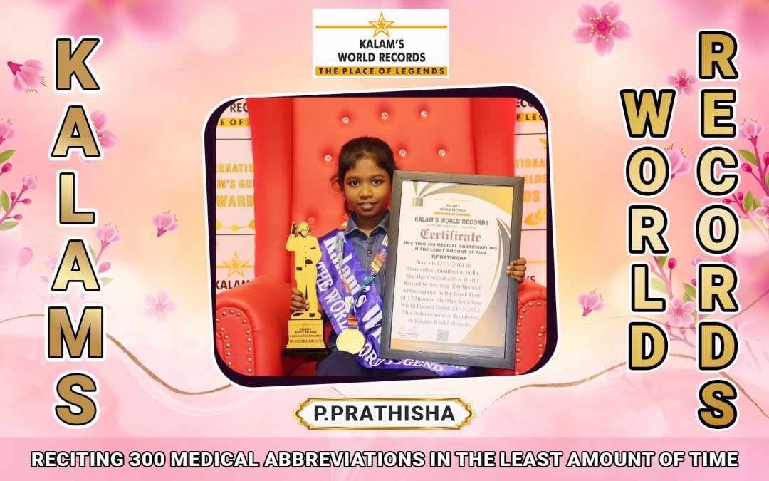 Was Born on 17-11-2014 in Thiruvallur, Tamilnadu, India. She Has Created a New World Record by Reciting 300 Medical Abbreviations in the Least Time of 13 Minutes. She Has Set a New World Record Dated 24-11-2022. This Achievement is Registered in Kalams World Records.