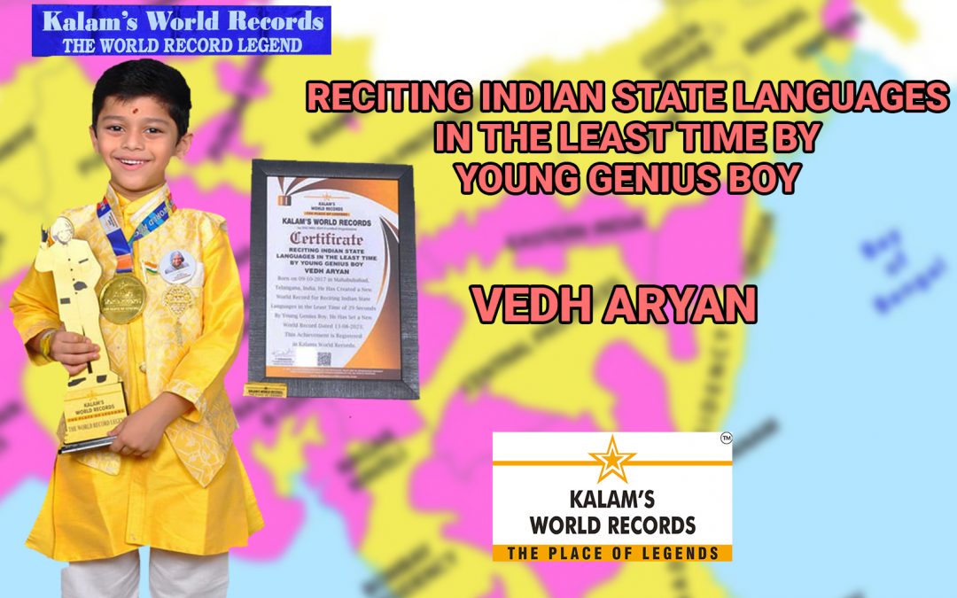 Born On 09-10-2017 In Mahabubabad, Telangana, India. He Has Created A New World Record For Reciting Indian State Languages In The Least Time Of 29 Seconds By Young Genius Boy. He Has Set A New World Record Dated 13-08-2023. This Achievement Is Registered In Kalams World Records.