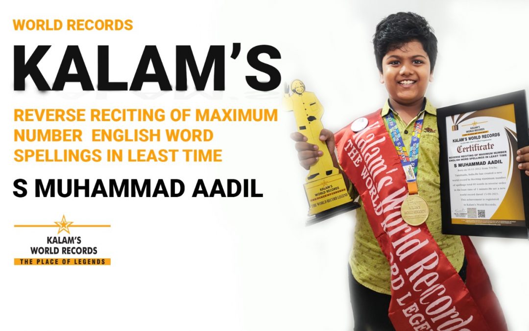 Born on 16-11-2012 from Trichy, Tamilnadu, India.He has created a new world record by Reciting a maximum number of spellings total of 60 words in reverse order in the least time of 1 minute. He set a New world Record Dated on 15-09-2021. This Achievement is Registered in Kalam’s World Records.