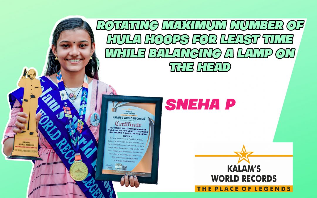 Born on 03-06-2003 in Palakkad, Kerala, India. She Has Created a New World Record for Rotating Maximum Number of 150 Hula Hoops While Balancing a Lamp on the Head for 1 Minute and 50 Seconds. She Has Set a New World Record Dated 10-10-2023. This Achievement is Registered in Kalams World Records.