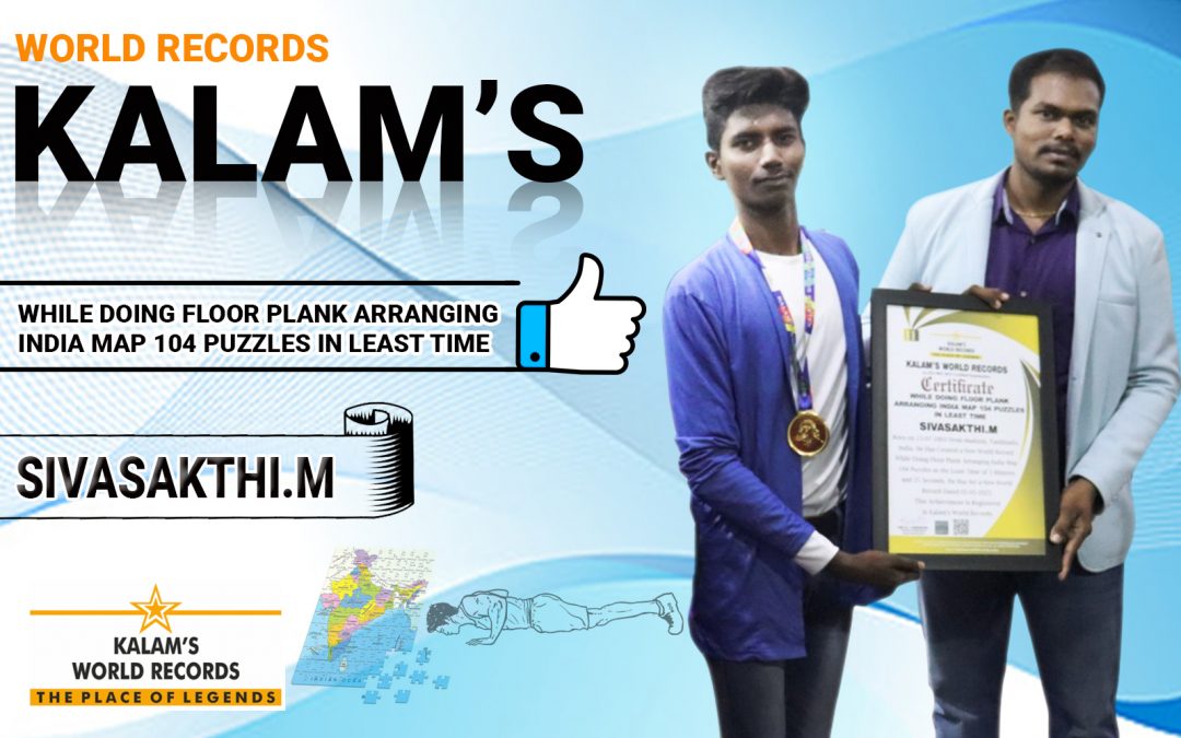Born on 15-07-2003 From Madurai, Tamilnadu, India. He Has Created a New World Record While Doing Floor Plank Arranging India Map 104 Puzzles in the Least Time of 3 Minutes and 25 Seconds. He Has Set a New World Record Dated 01-05-2022.this Achievement Is Registered in Kalam’s World Records.