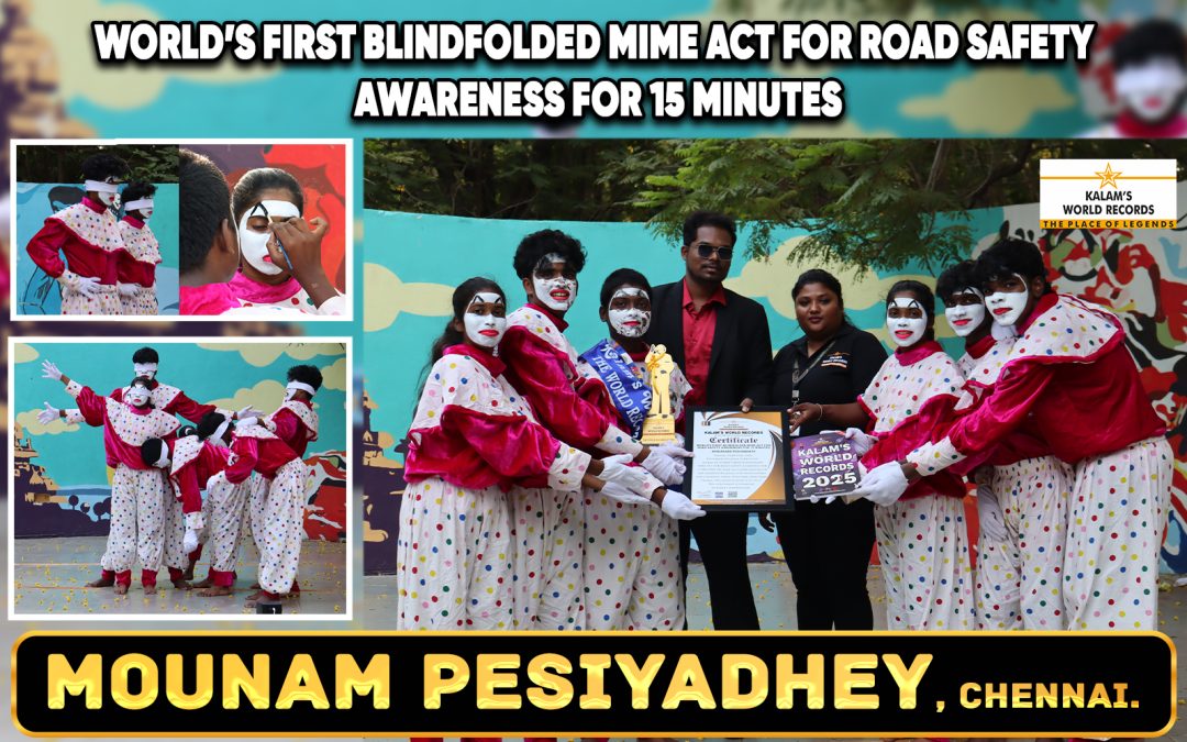 Attempt record for WORLD’S FIRST BLINDFOLDED MIME ACT FOR ROAD SAFETY AWARENESS FOR 15 MINUTES.