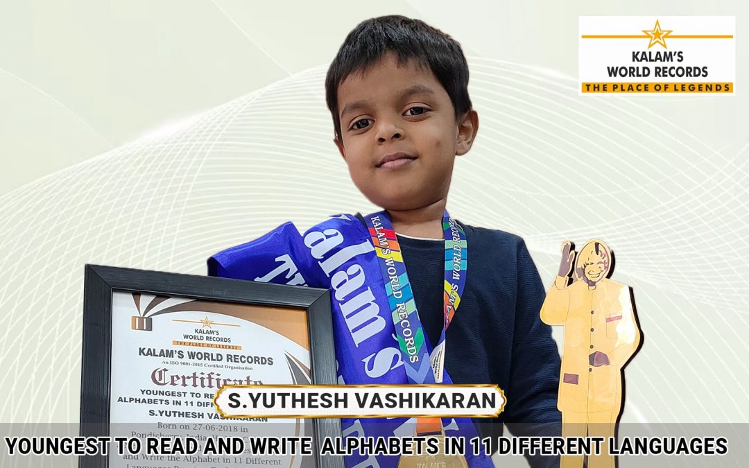 Born on 27-06-2018 in Pondicherry, India. He Has Created a New World Record by Youngest to Read and Write Alphabets in 11 Different Languages Are Russian, English, Sapanish, Greek, Tamil, Hindi, Vietnamese, Esponal (Esponal Alphabet Lore), Kazakh, French and Polish. He Has Set a New World Record Dated 30-01-2023. This Achievement is Registered in Kalams World Records.